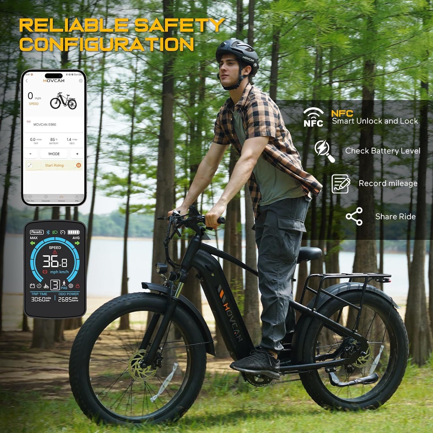 The smart LCD display delivers real-time ride data at a glance - speed, battery level, distance, and assist mode. NFC-enabled keyless start provides great convenience: simply tap your phone or card to power on. This seamless tech combo puts control in your palm, making ride smarter and more secure.