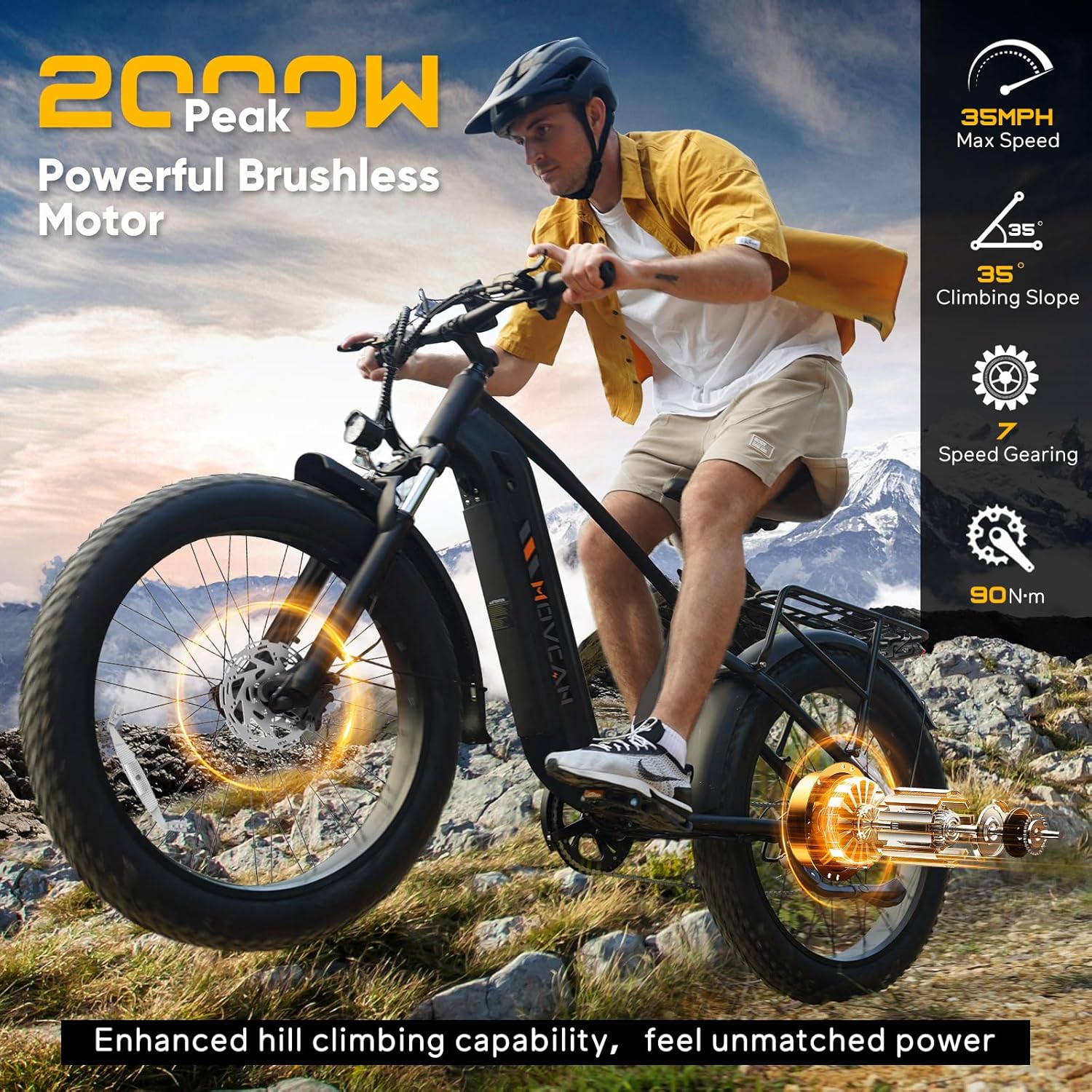 2000W peak motor, 28MPH max, 26" fat tires, NFC