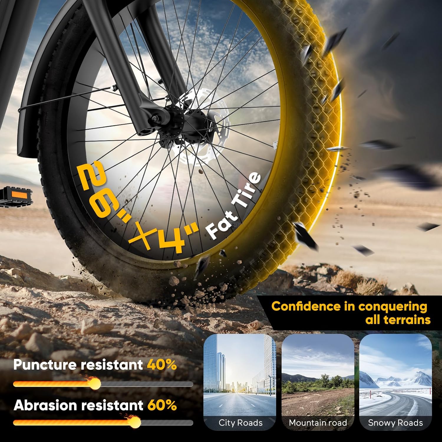 Ride fearlessly through rugged trails, muddy paths, and snowy slopes with our all-terrain electric mountain bike. Built to dominate any landscape, its waterproof design laughs in the face of rain, snow, and splashes—no season can stop your adventure.