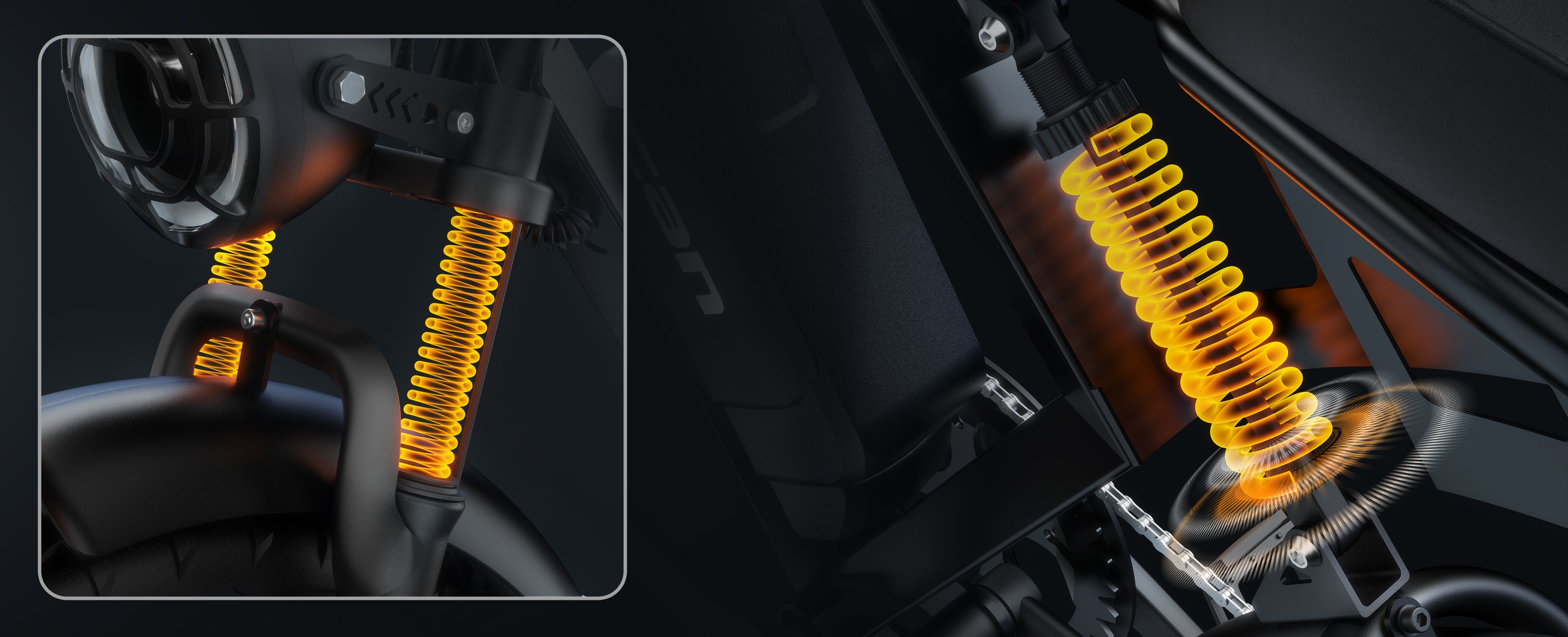 Movcan V30 Max dual hydraulic brakes deliver 70% stronger stopping power for absolute control in any condition, offering fade-resistant performance and one-finger modulation to confidently handle high-speed rides, steep descents, and emergency stops with precision and reliability.