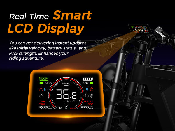 The smart LCD display delivers real-time ride data at a glance - speed, battery level, distance, and assist mode. NFC-enabled keyless start provides great convenience: simply tap your phone or card to power on. This seamless tech combo puts control in your palm, making ride smarter and more secure.