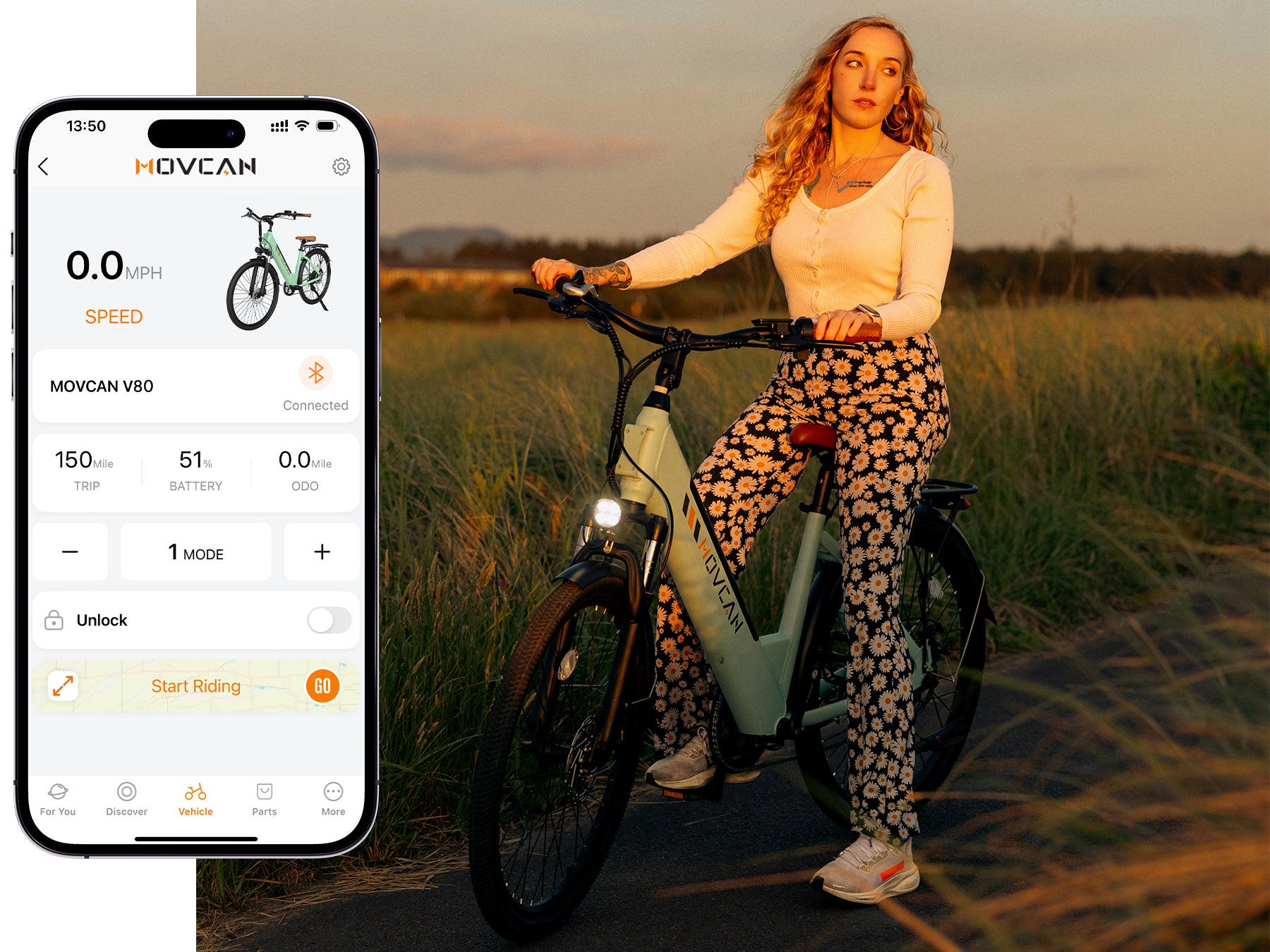 Connect your ride with the Movcan app to track real-time stats, making this smart electric bike perfect for modern commuters. With built-in ride tracking and performance monitoring, you can easily review your trips and improve your riding experience.